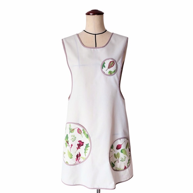 パイピングエプロン marupoke 撥水白×ベビーリーフ