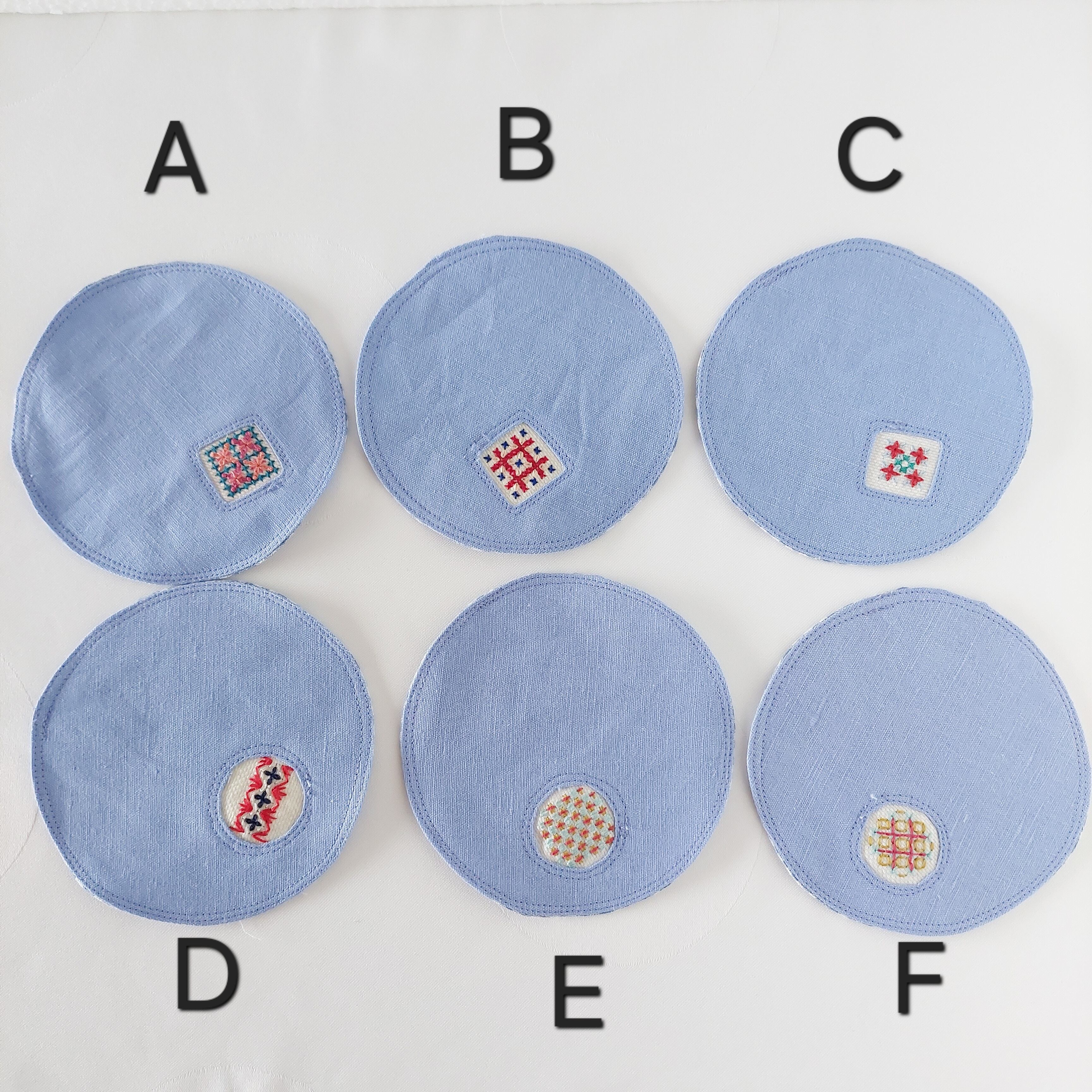 手刺繍入りコースター M ヒヤシンスブルー フランス刺繍 直径12cm