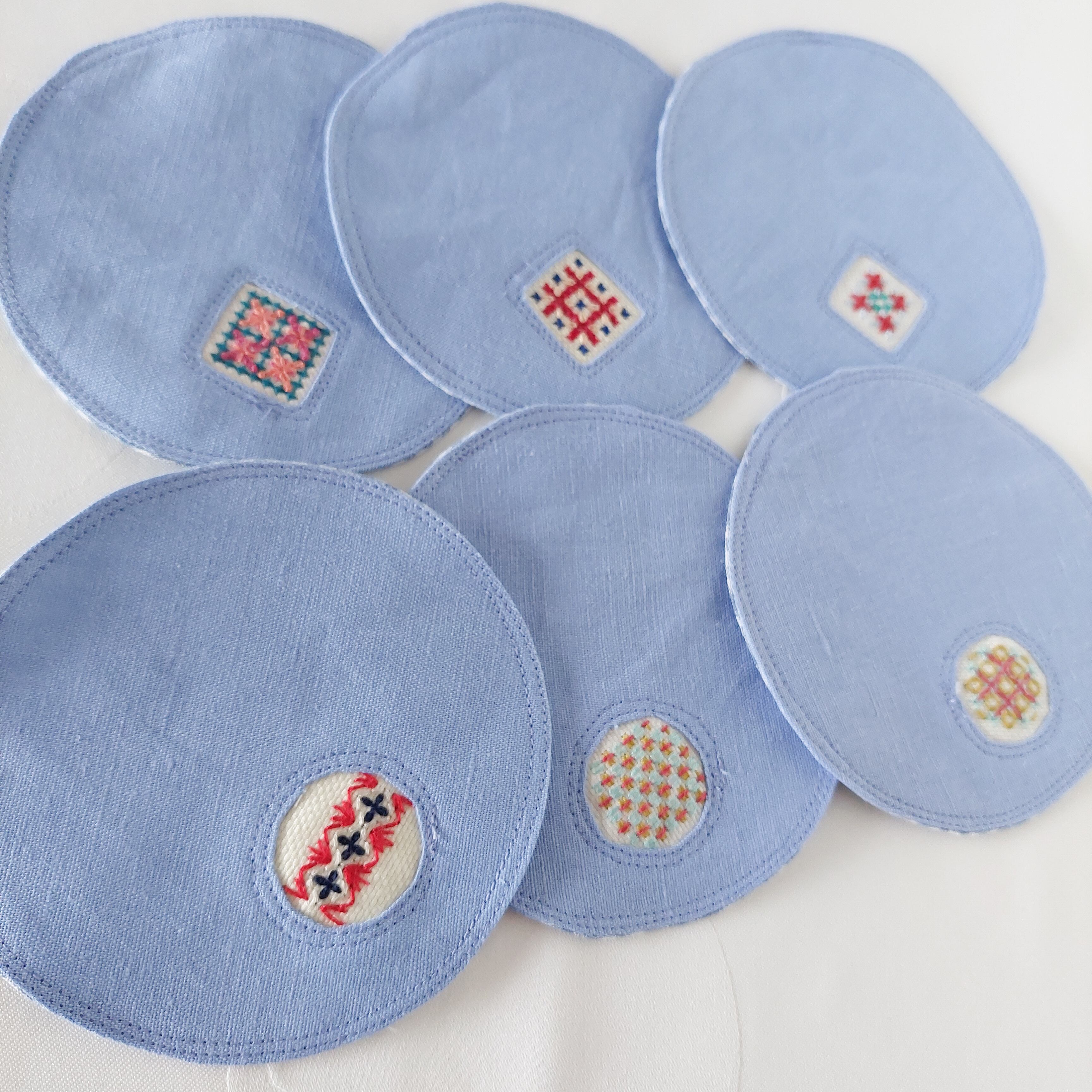 1針1針丁寧に刺した刺繍が施されたこのコースター。お仕事の合間、家事の合間、お勉強の合間の休憩タイムがより楽しくなりますように。。。
