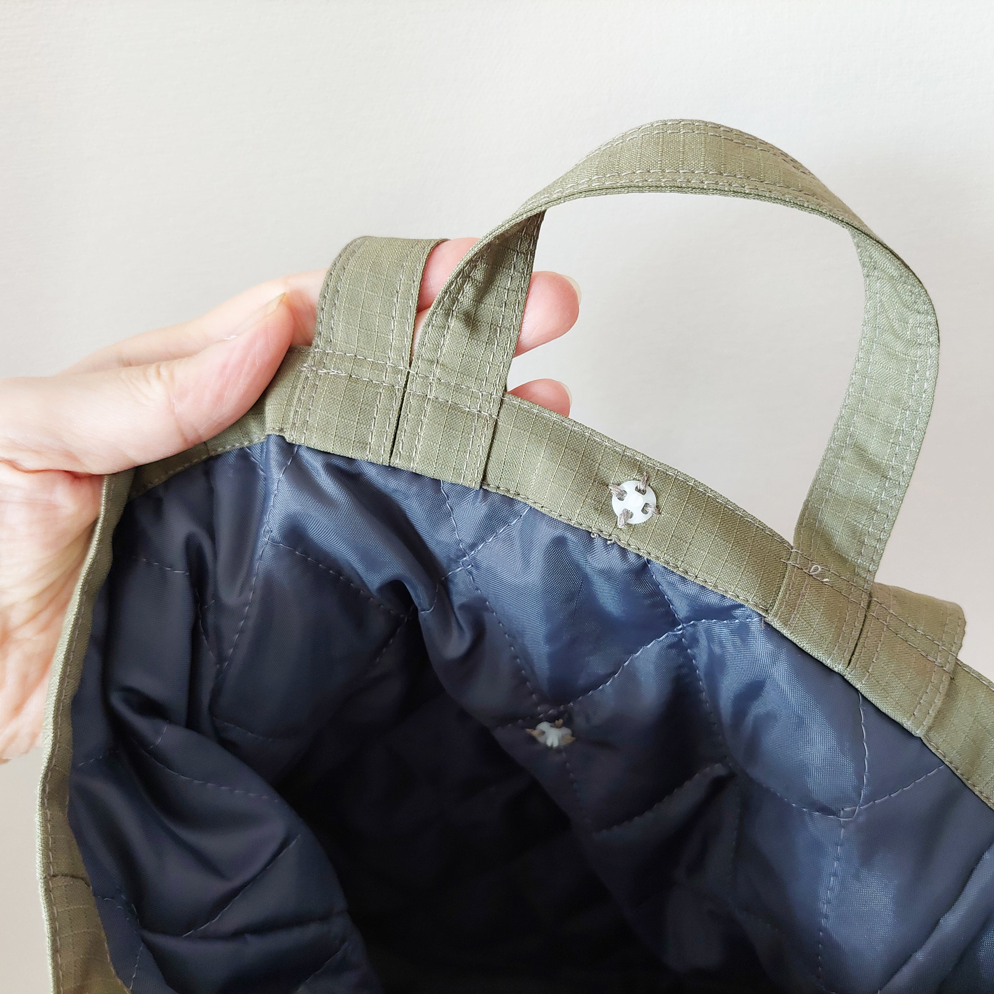 真ん中に3つついているスナップボタンを留めると、仕切りになり、ボトル同士が当たらないようになります。