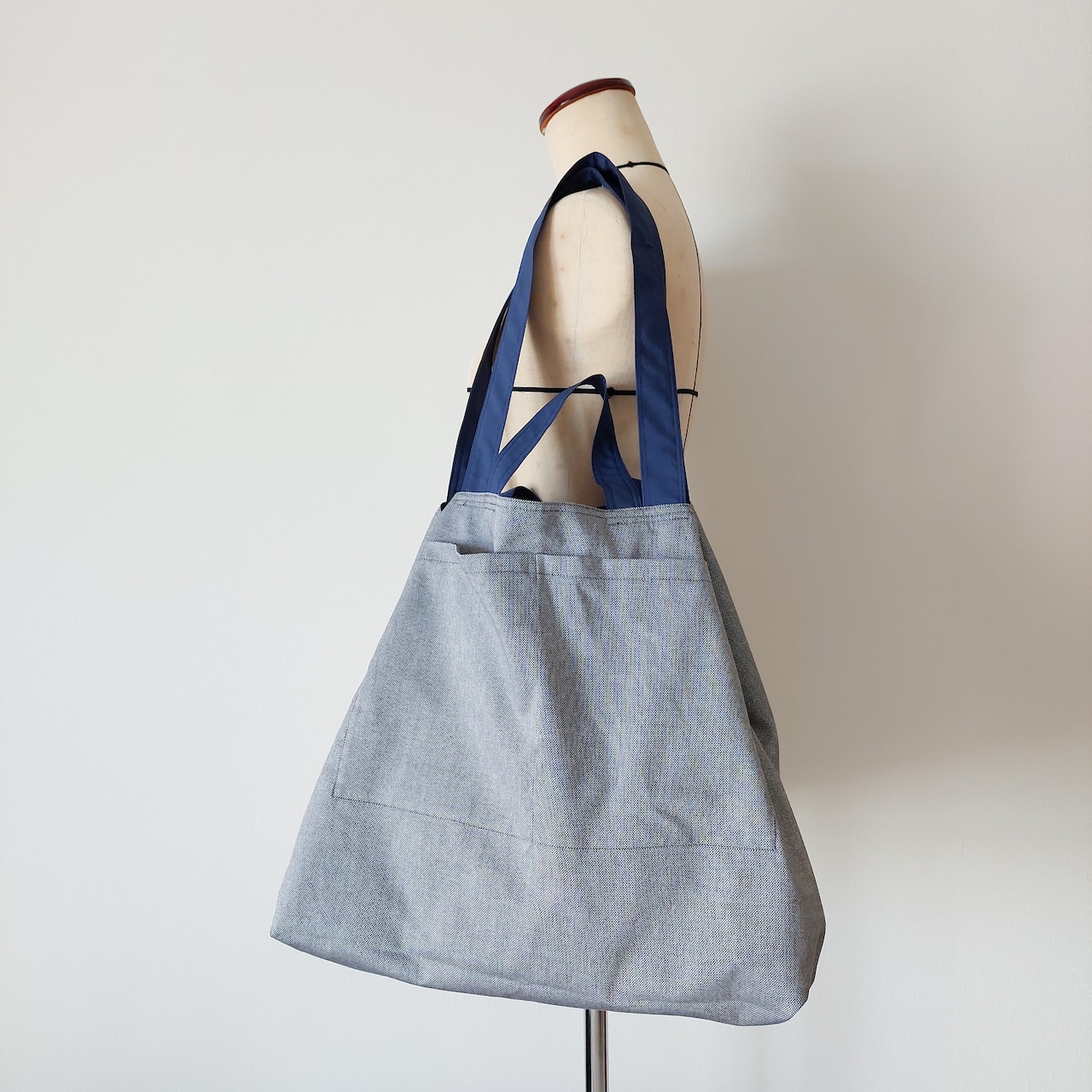 【Lovikka】2Wayリバーシブルエコバッグ ネイビーBlue サイズM