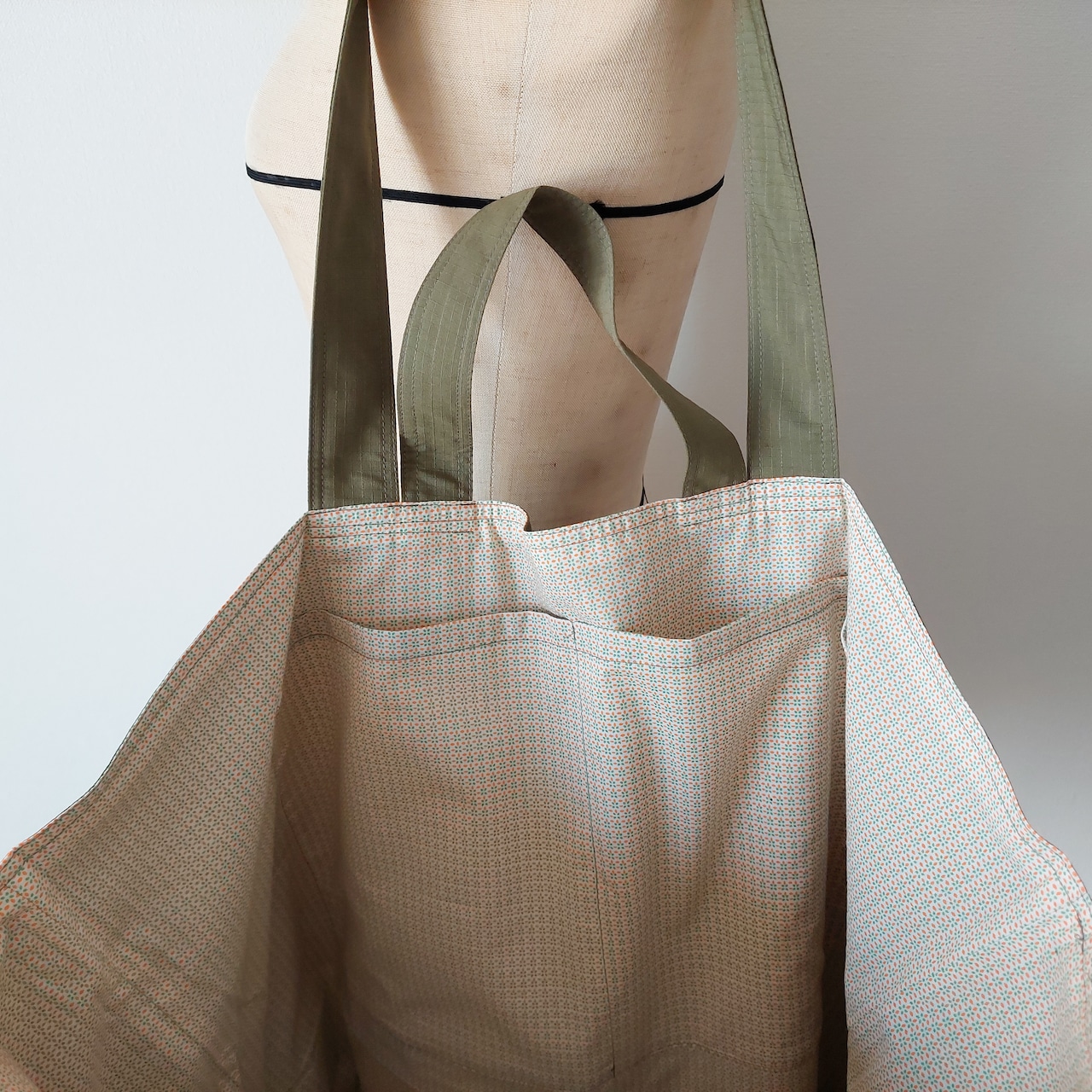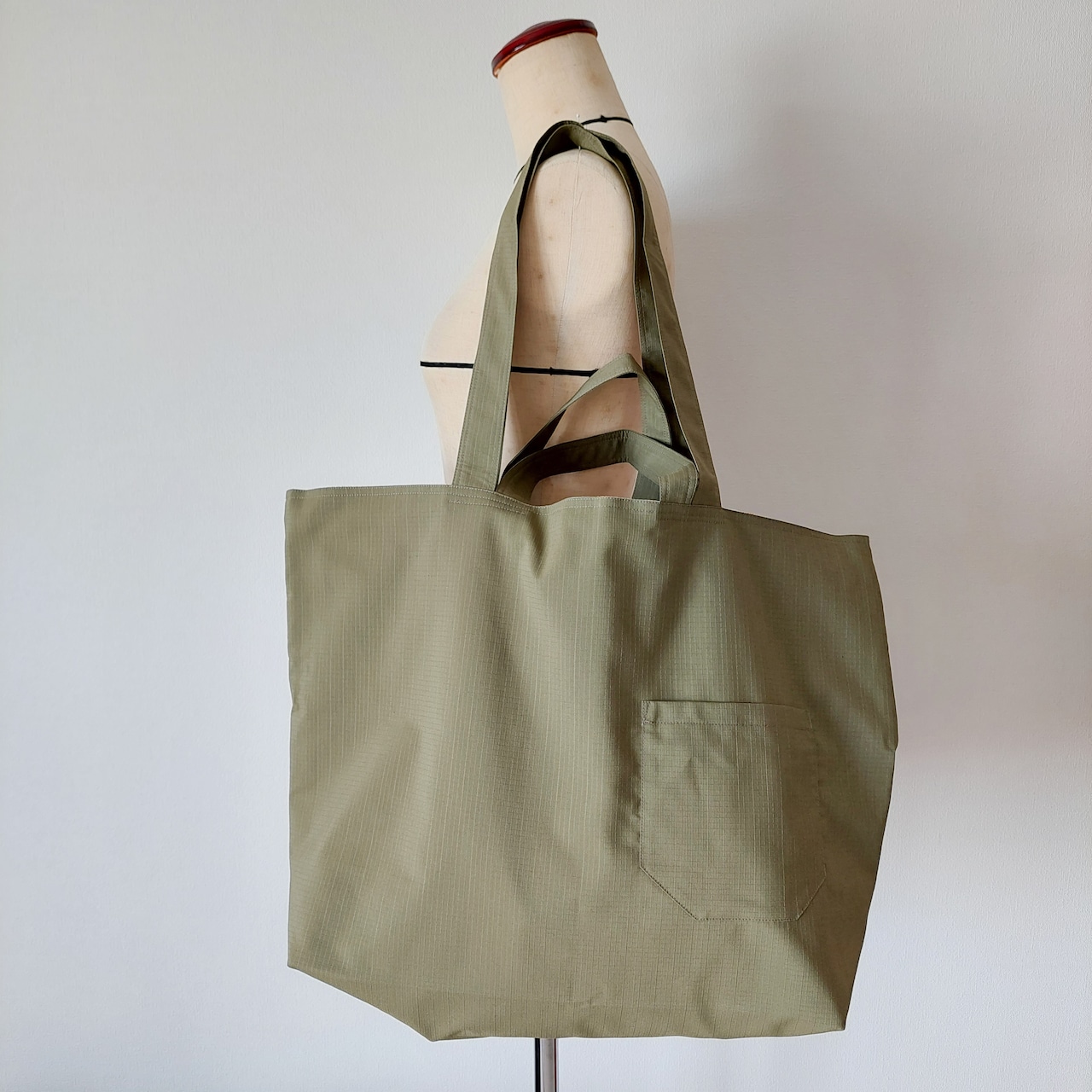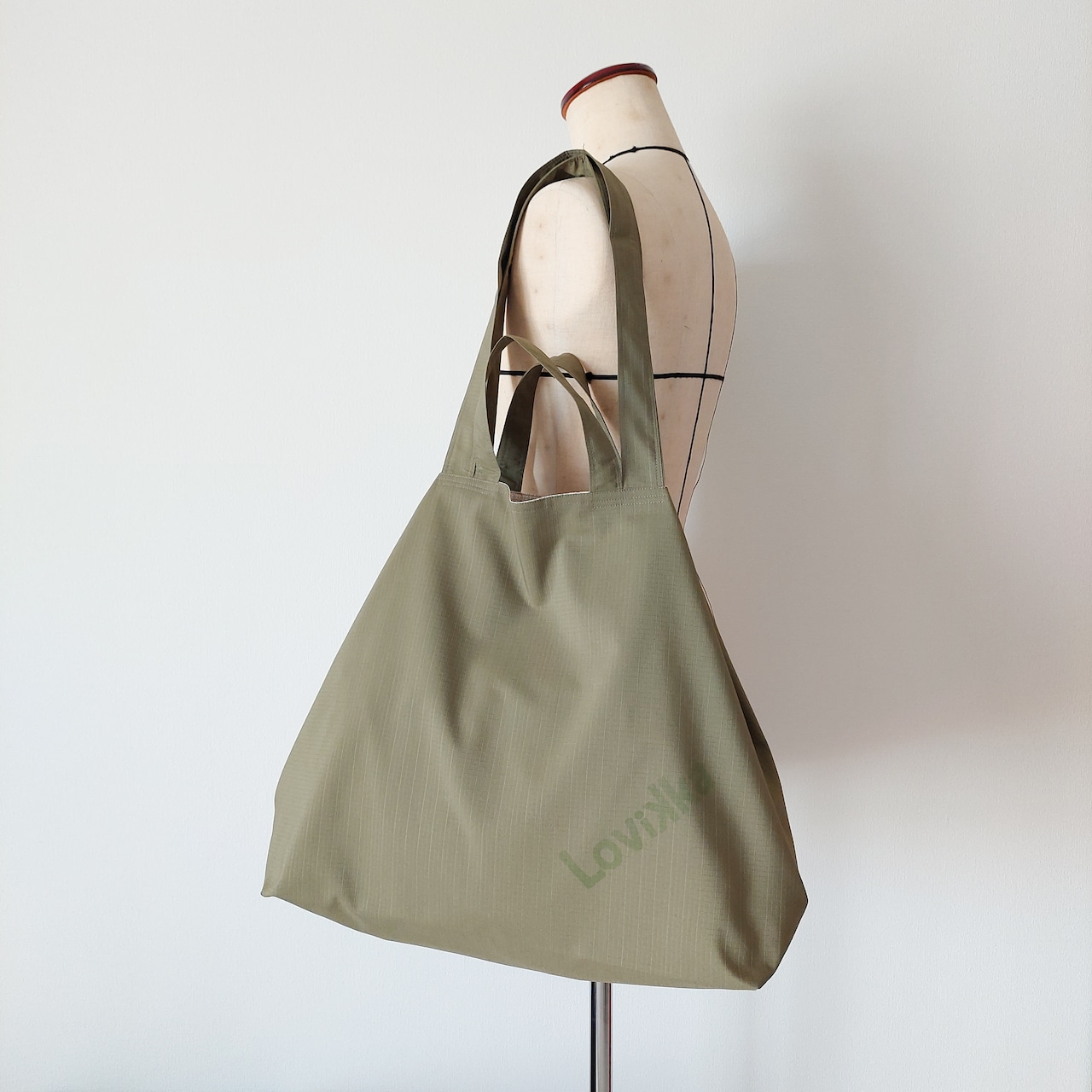 【Lovikka】2Wayリバーシブルエコバッグ オリーブgreen サイズM