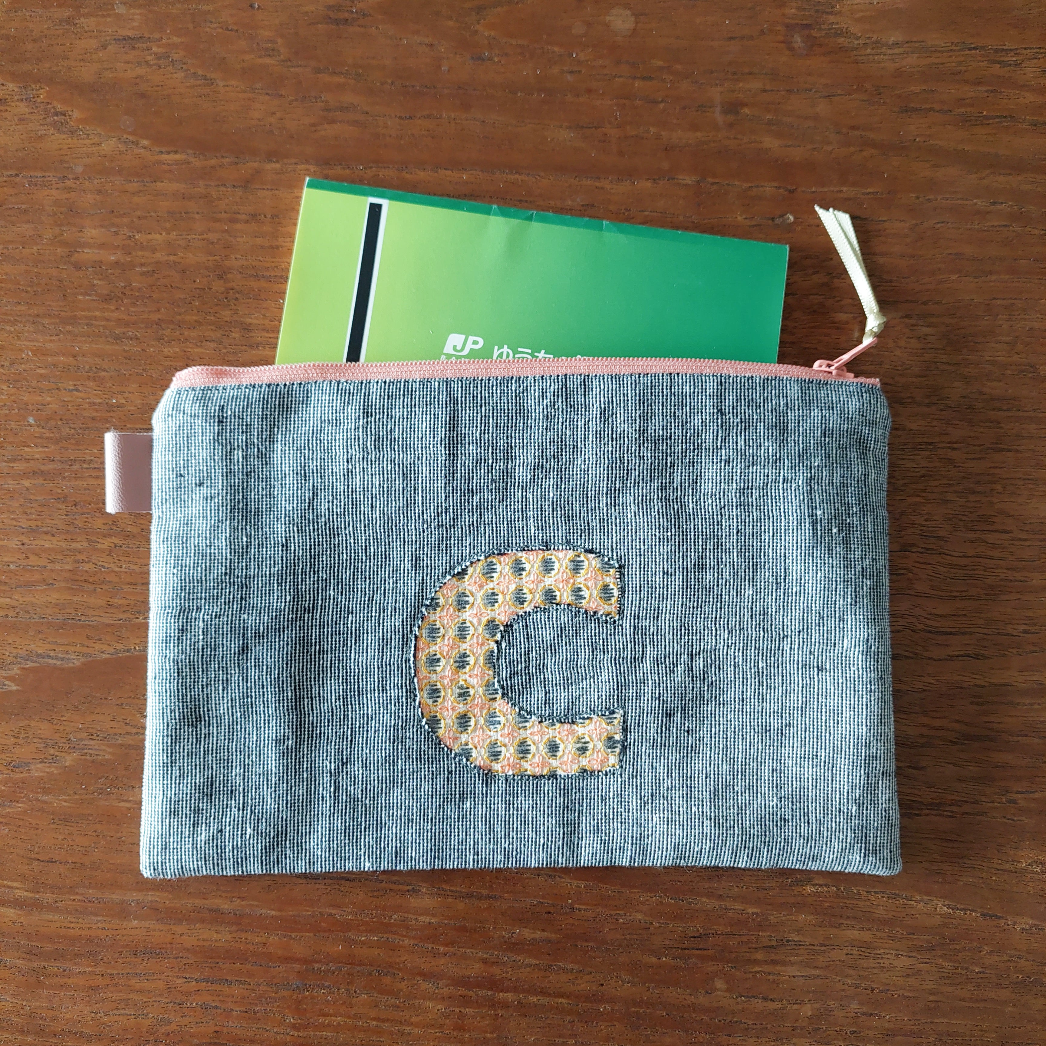 アルファベットポーチ C 通帳ケース コスメポーチに! gray系