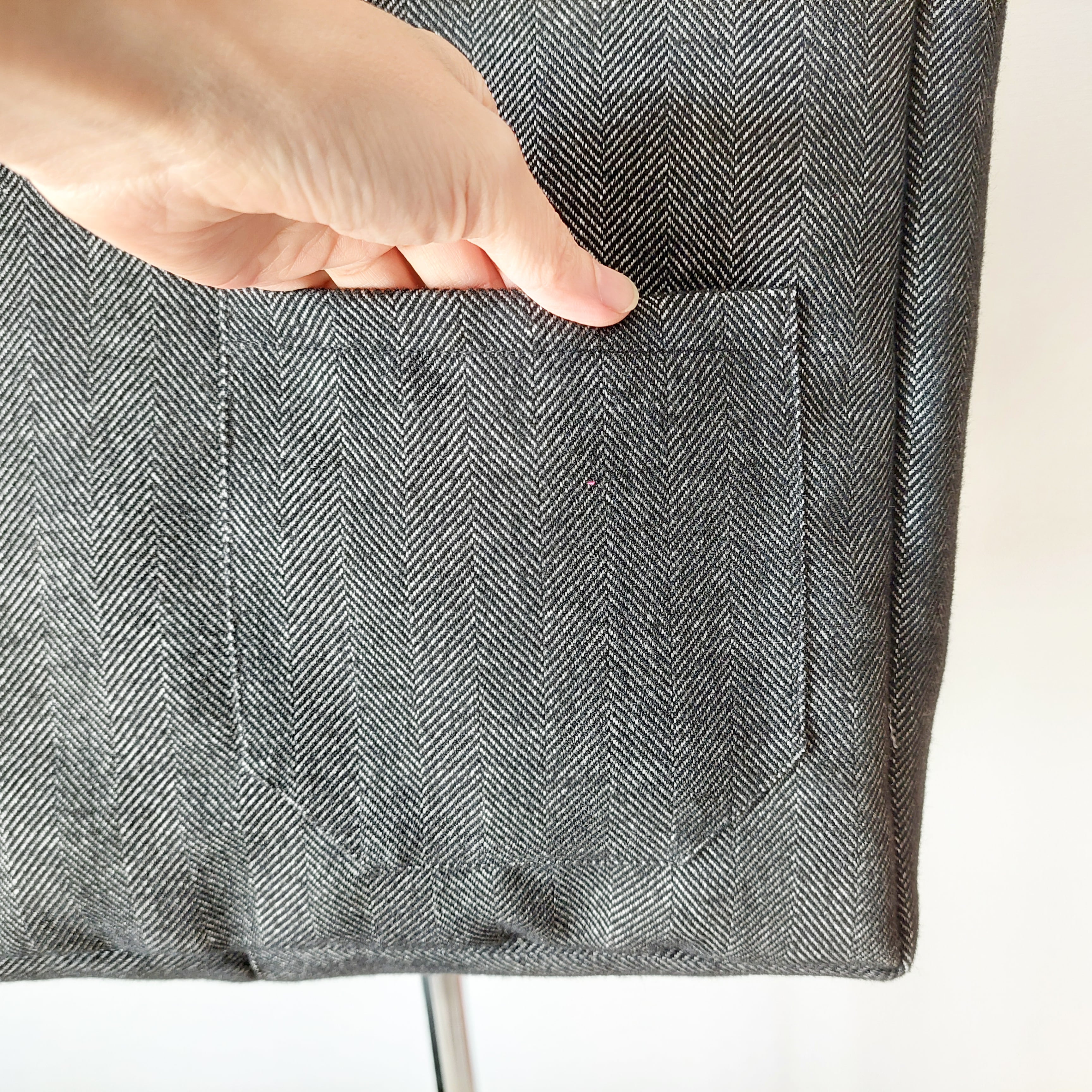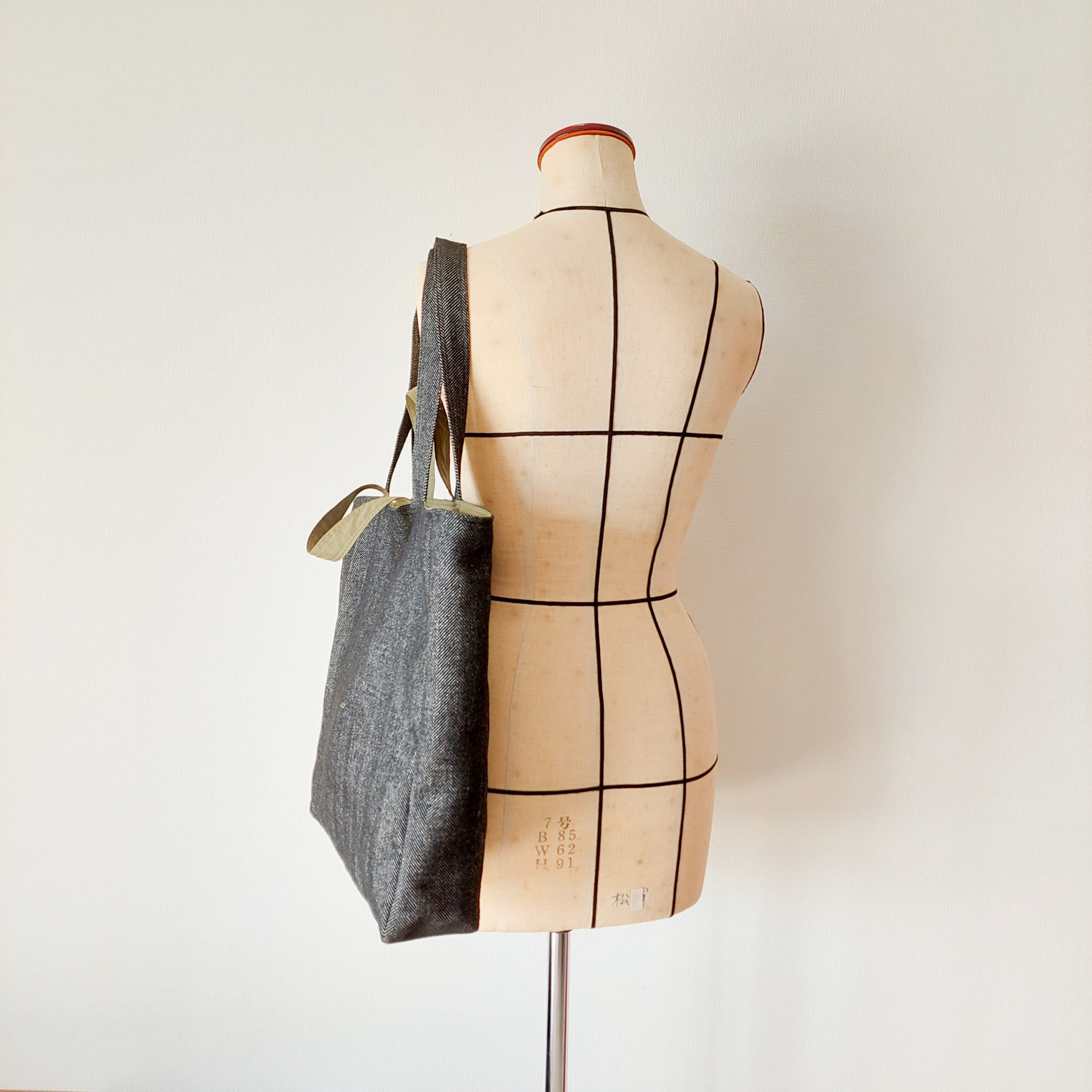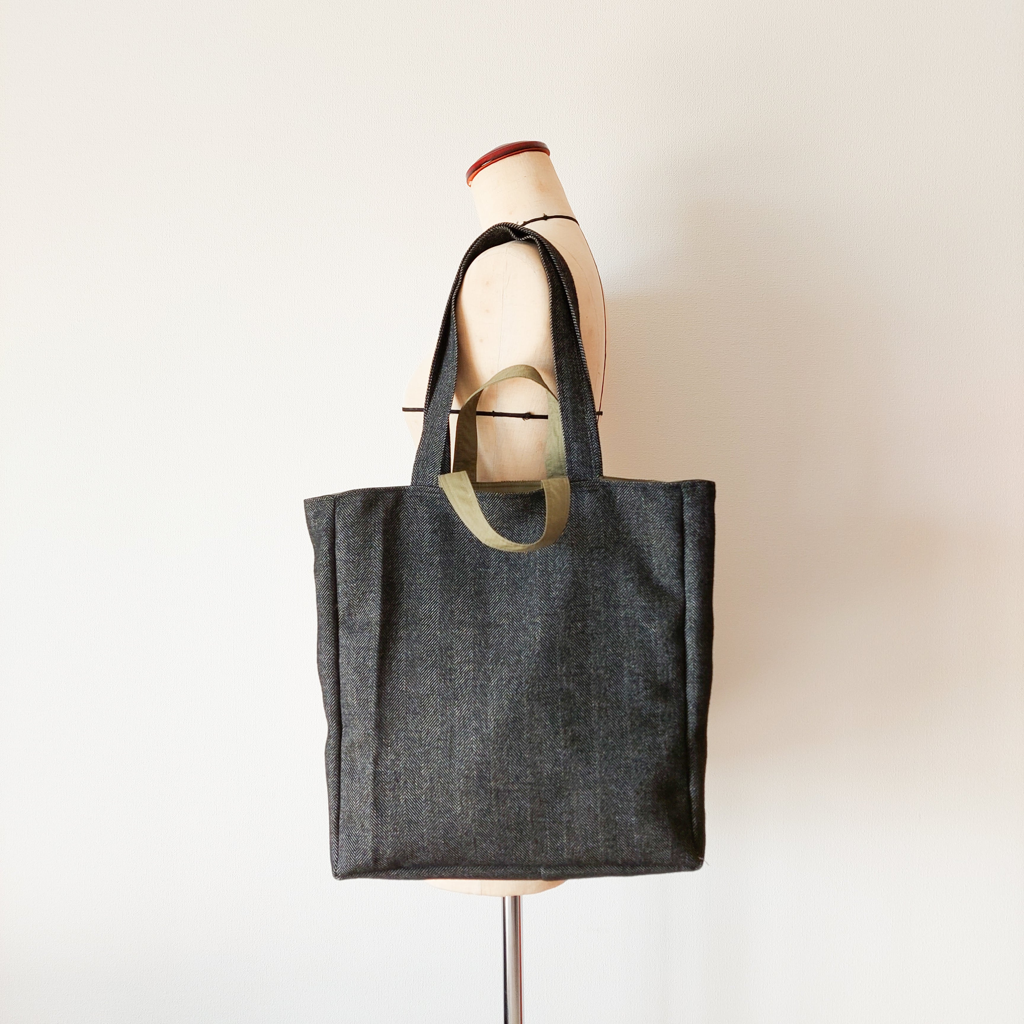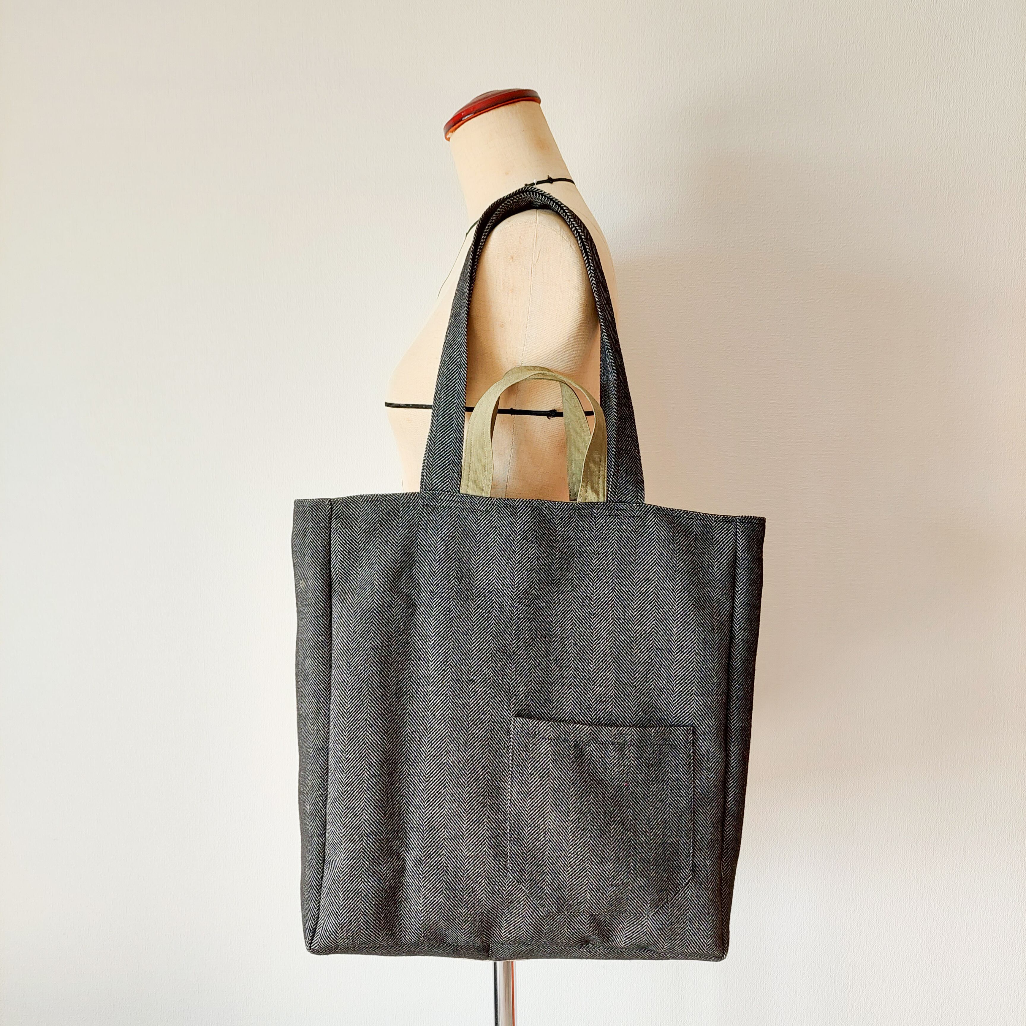 【Lovikka】リバーシブルトートバッグ ウールグレーヘリンボーン×オリーブGreen