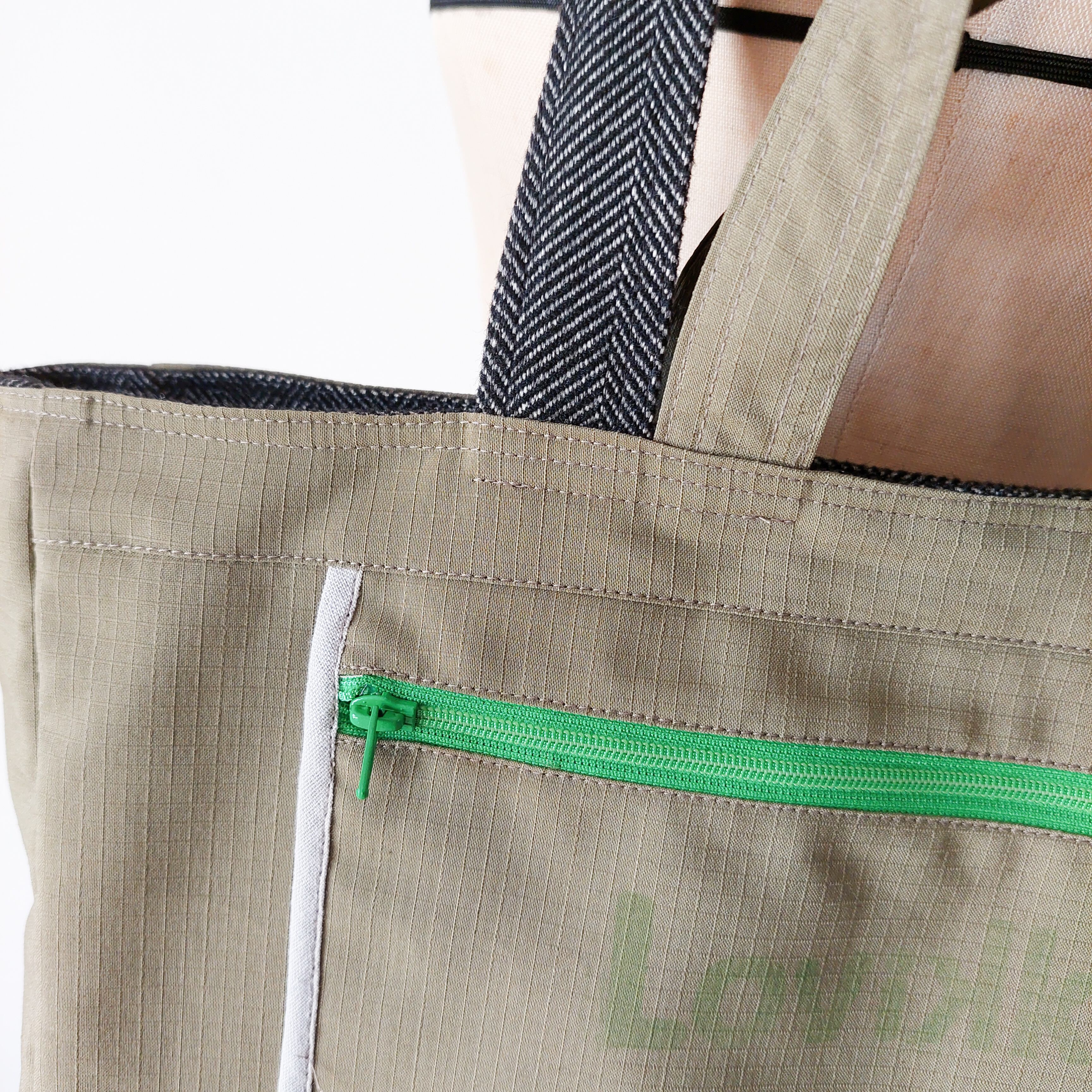 2Wayリバーシブルトートバッグ グレーヘリンボーン×オリーブGreen