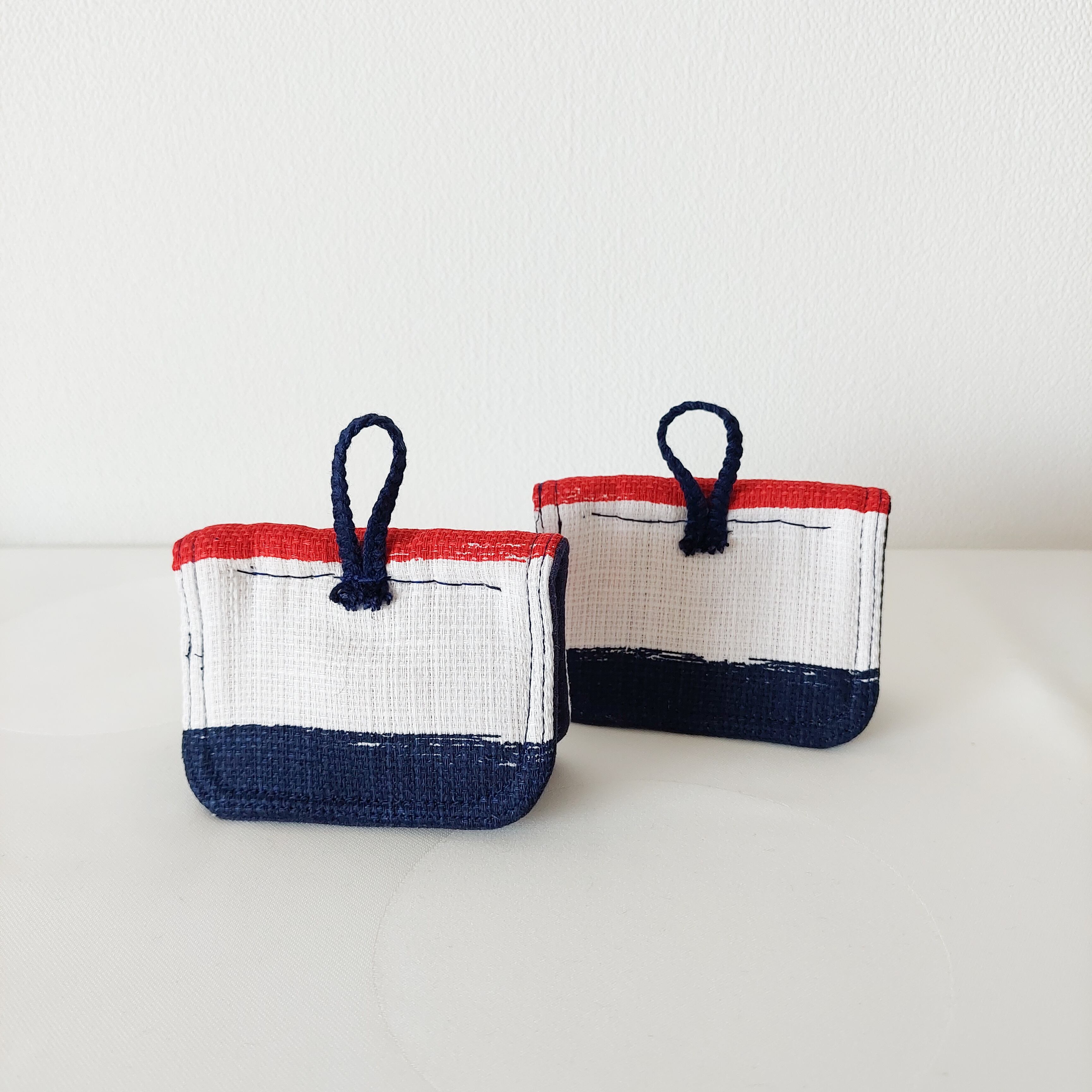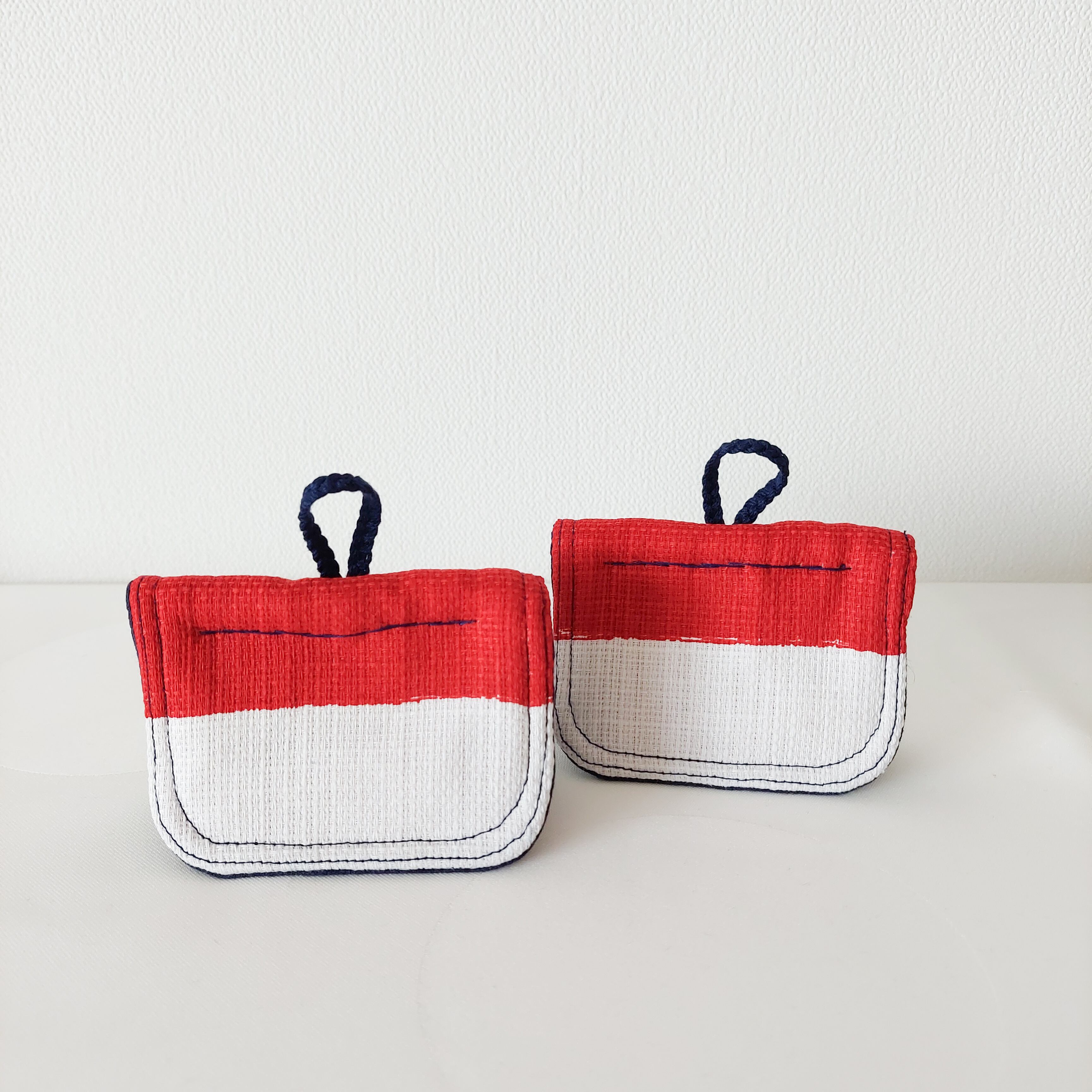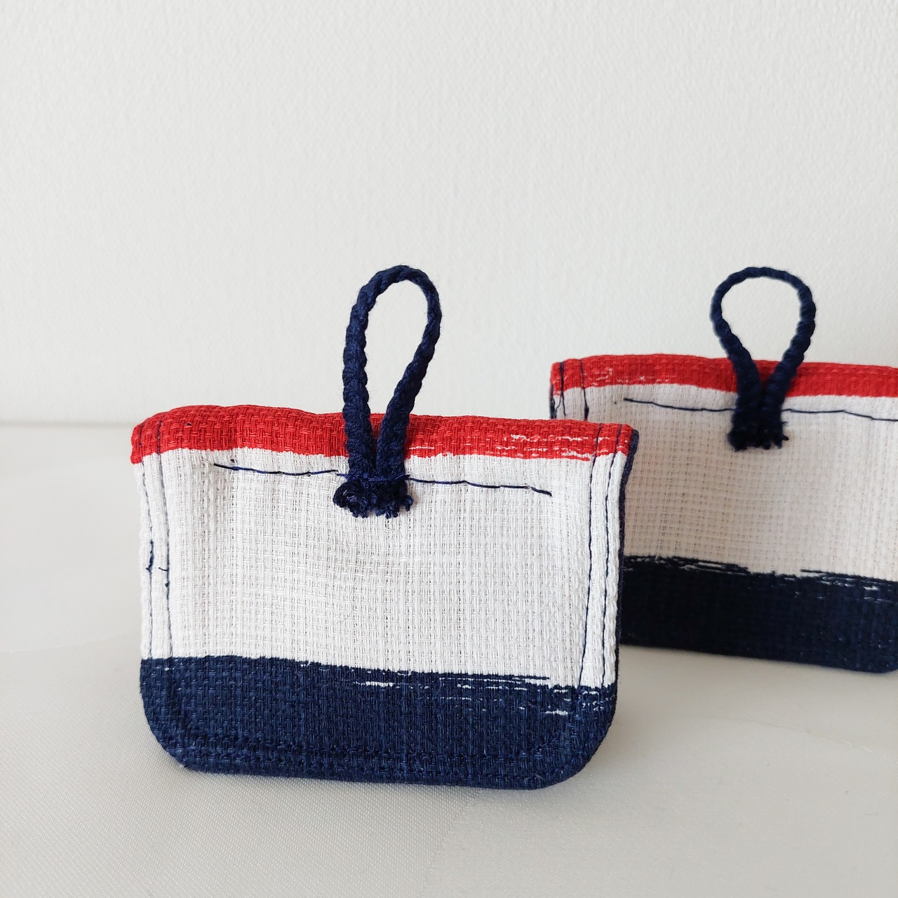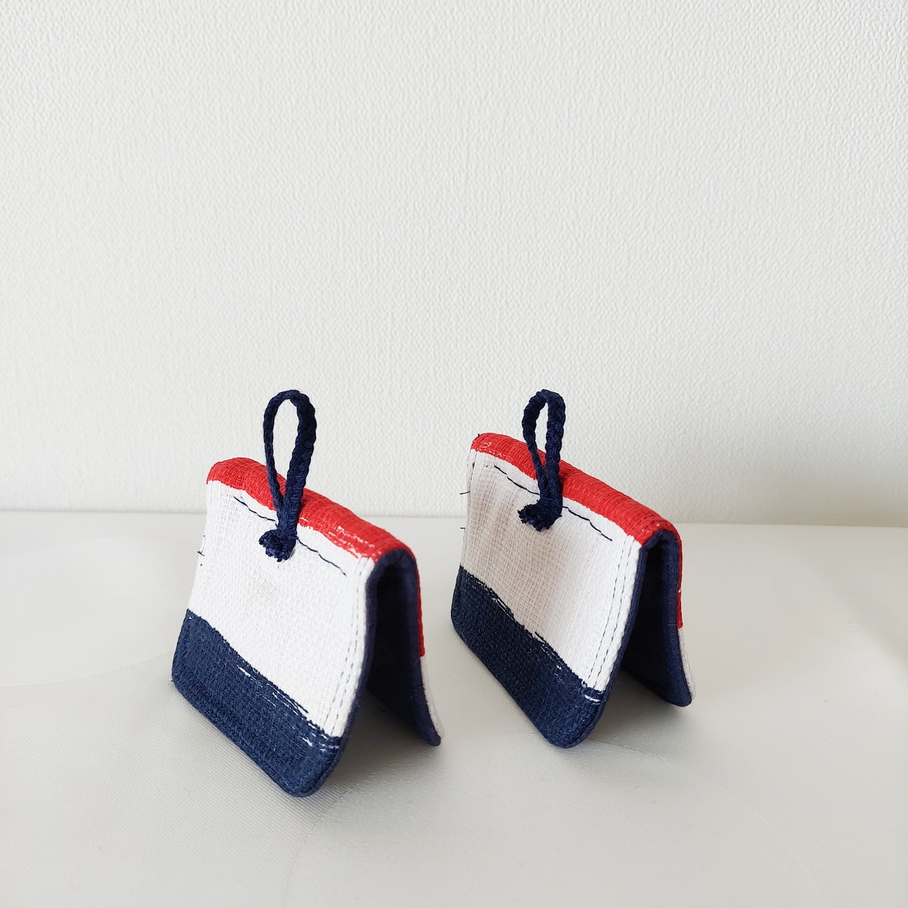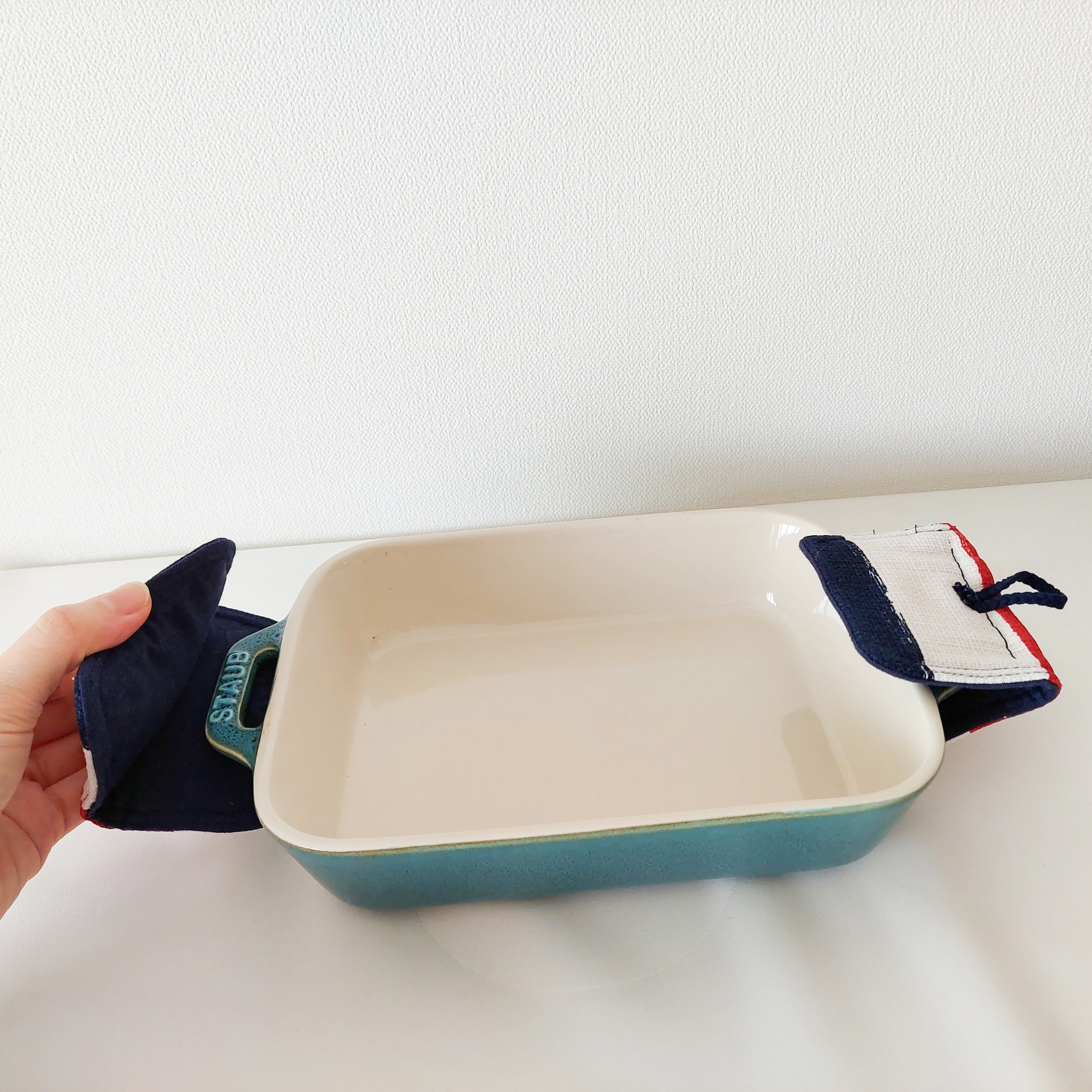 赤白青のトリコロールカラー。テーブルに飾りたくなる鍋つかみに仕上がりました。
