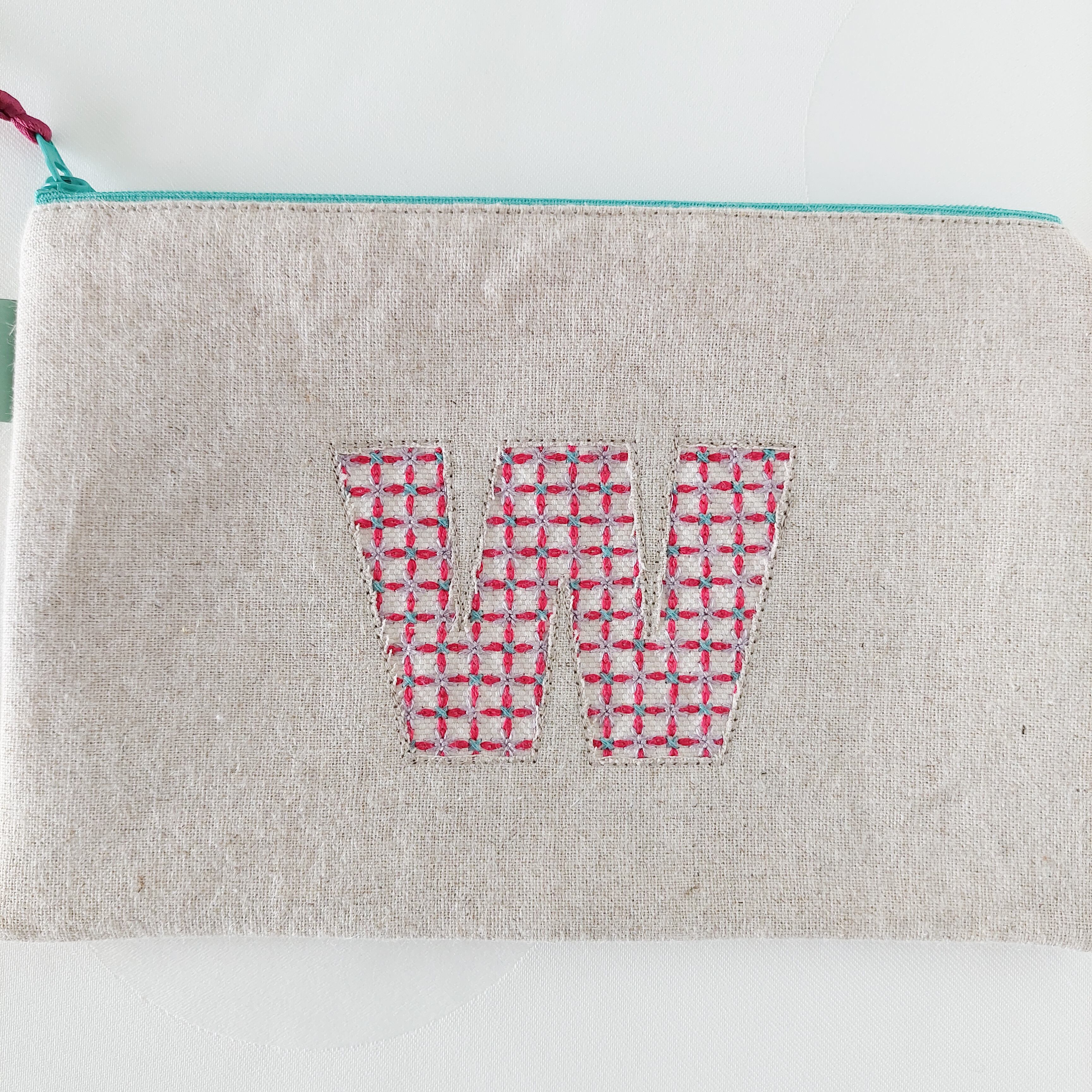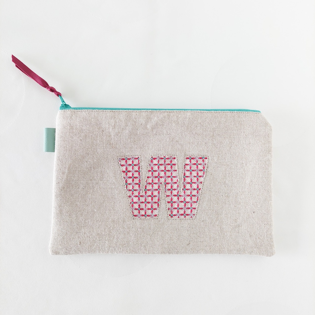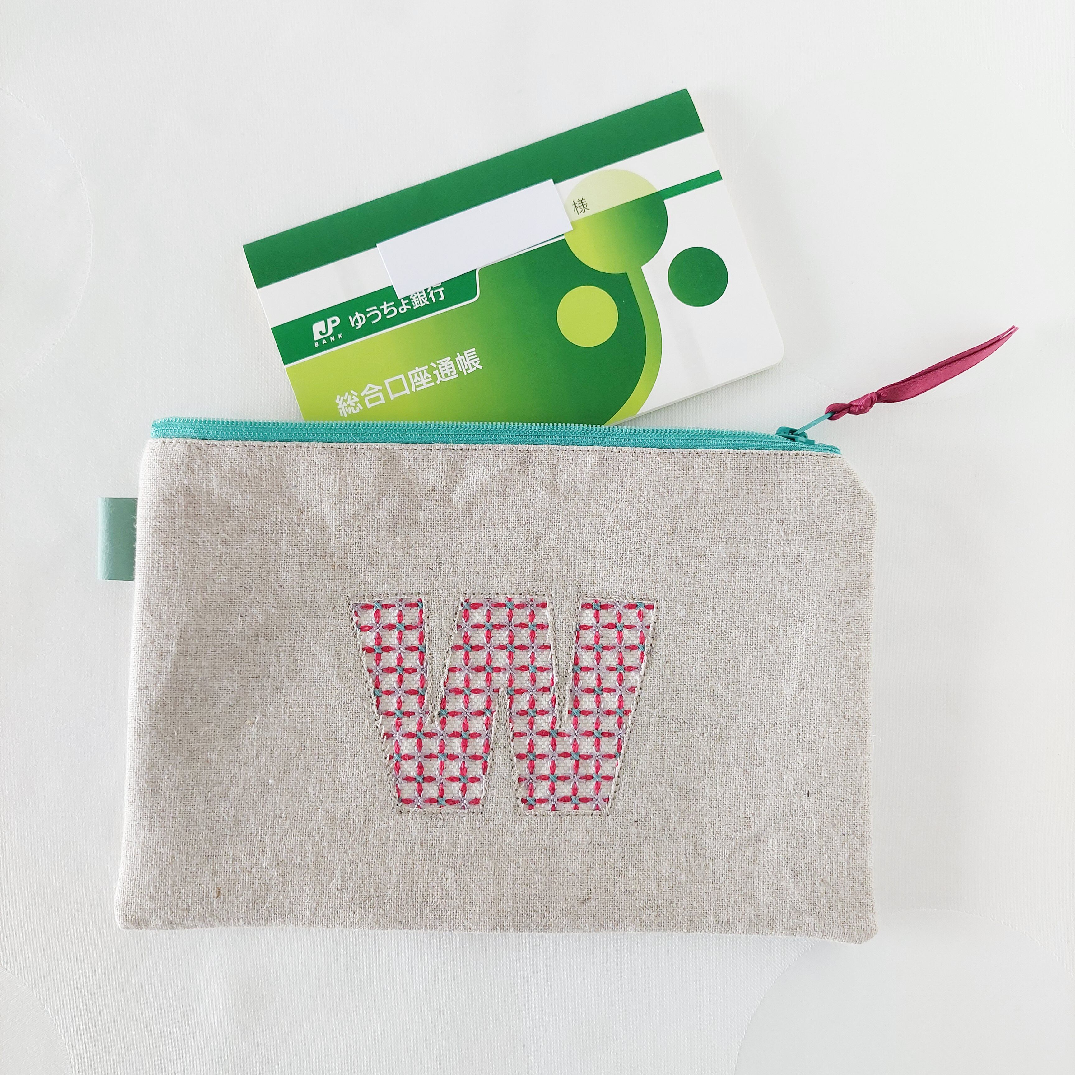 刺繍アルファベットポーチ W 通帳ケース コスメポーチに! ライトベージュ