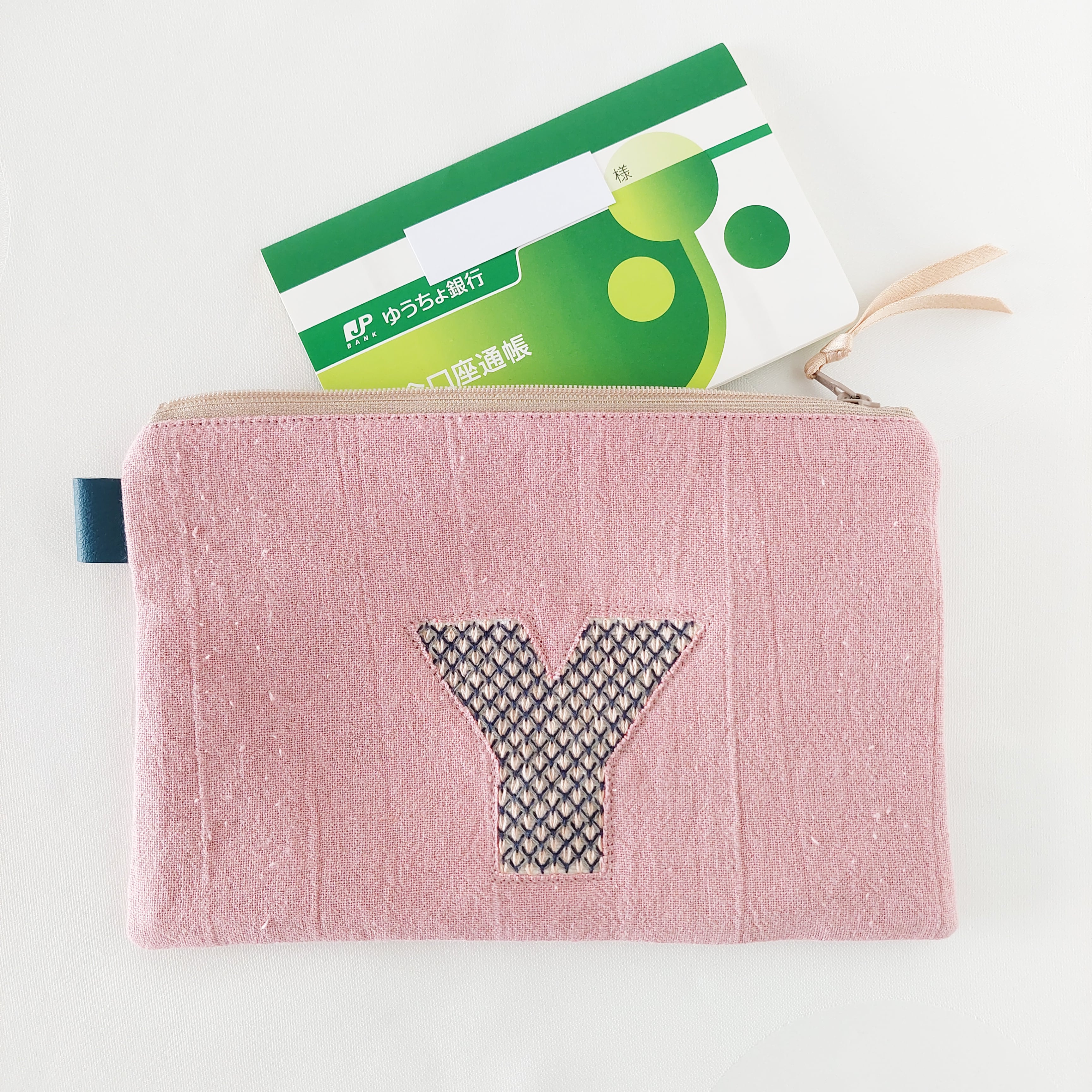 刺繍アルファベットポーチ Y 通帳ケース コスメポーチに!