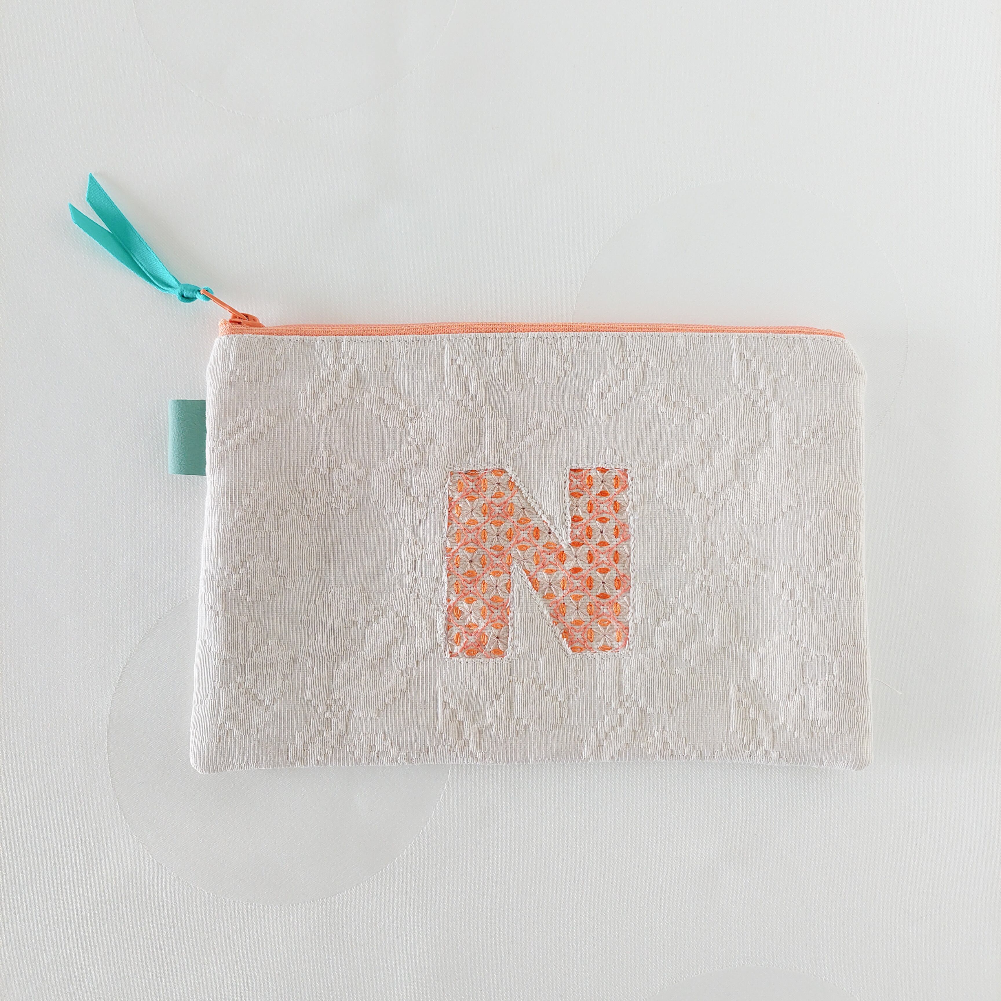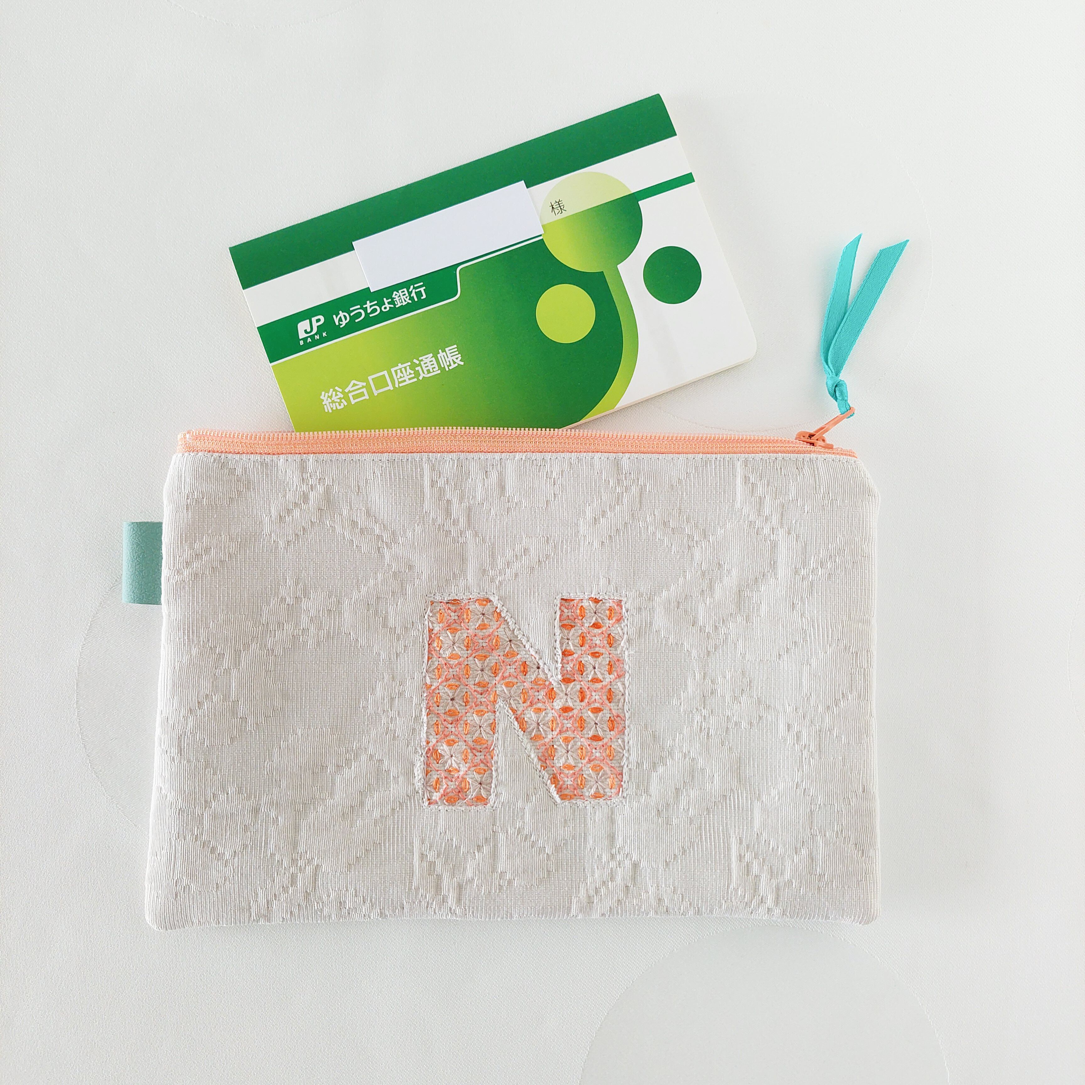 刺繍アルファベットポーチ N 通帳ケース コスメポーチに!