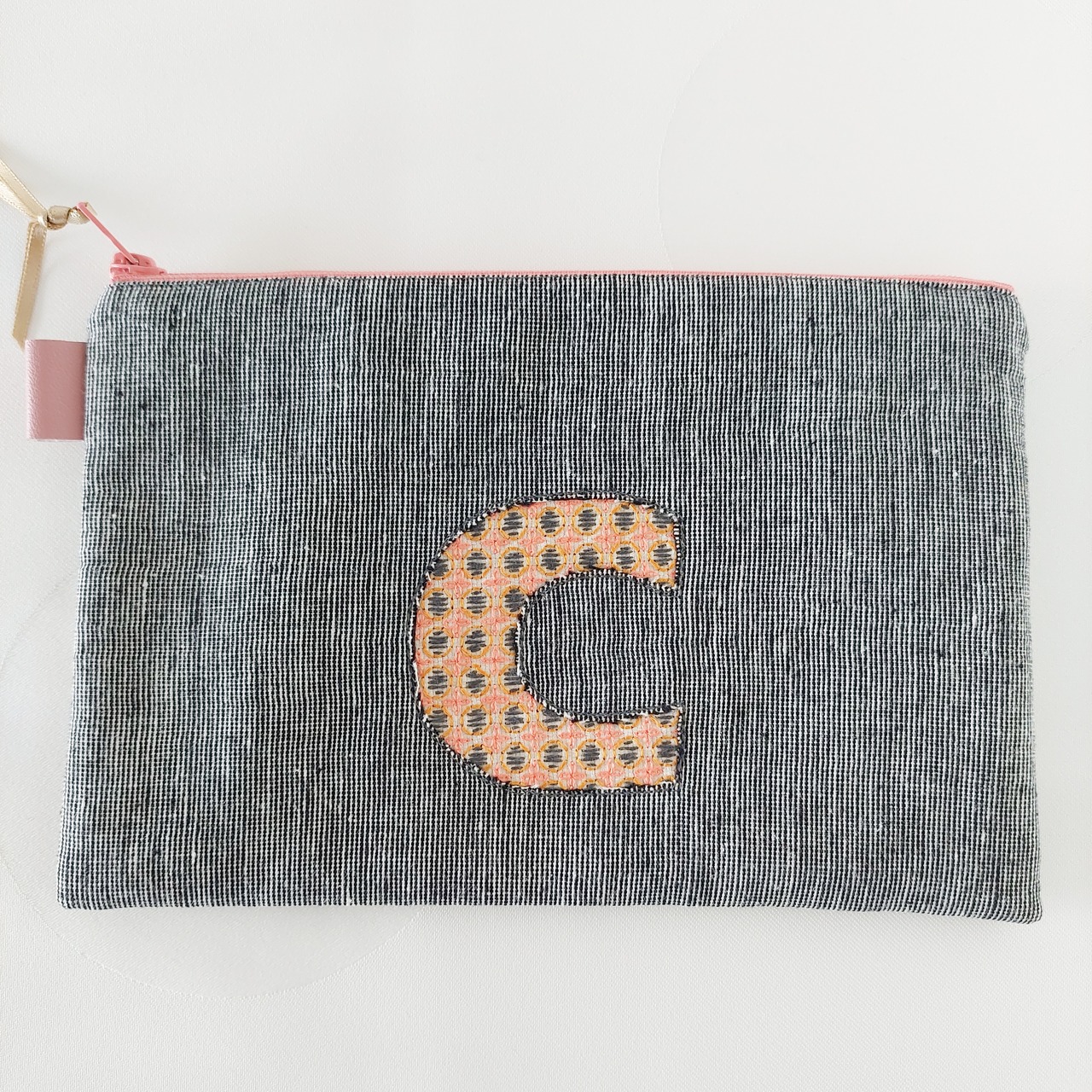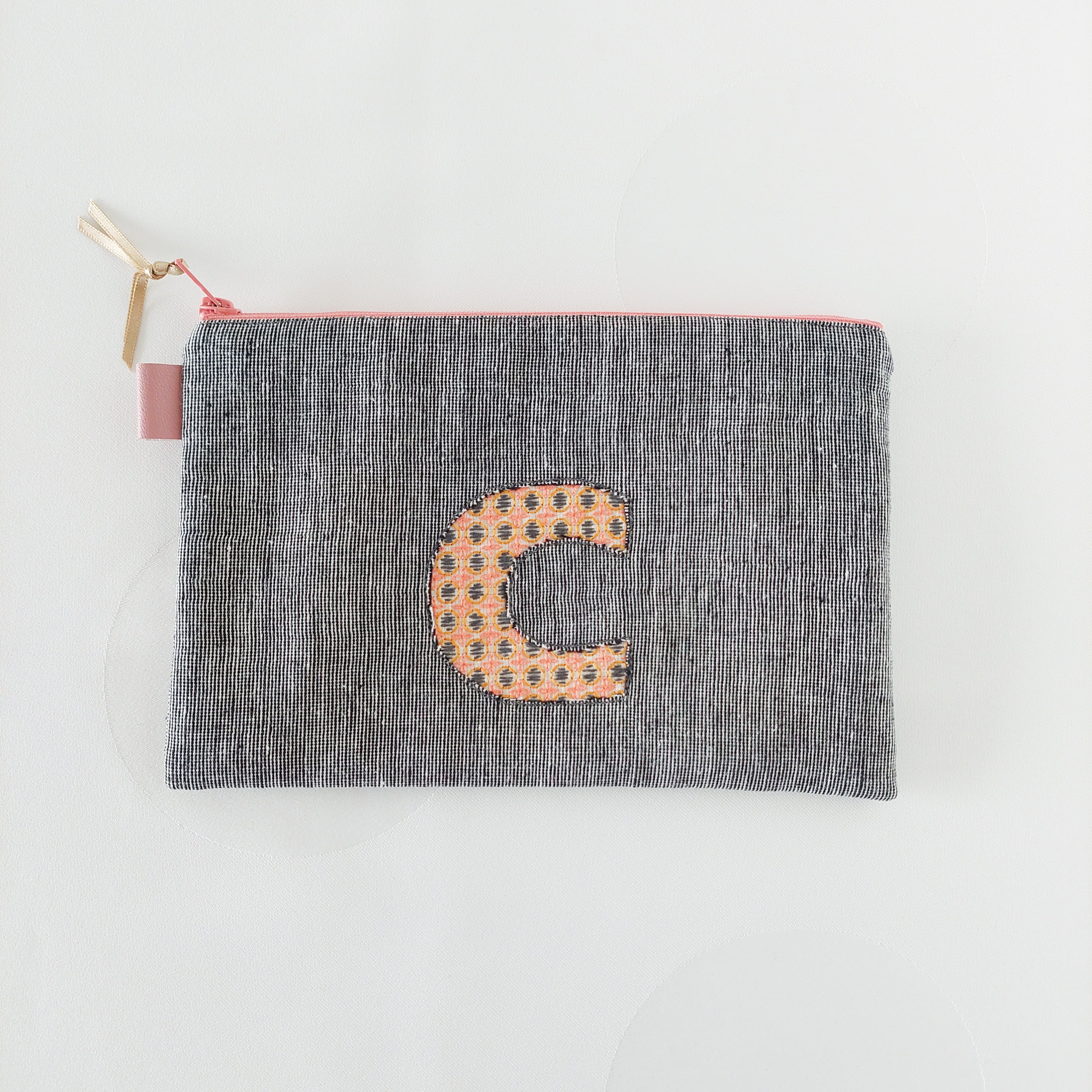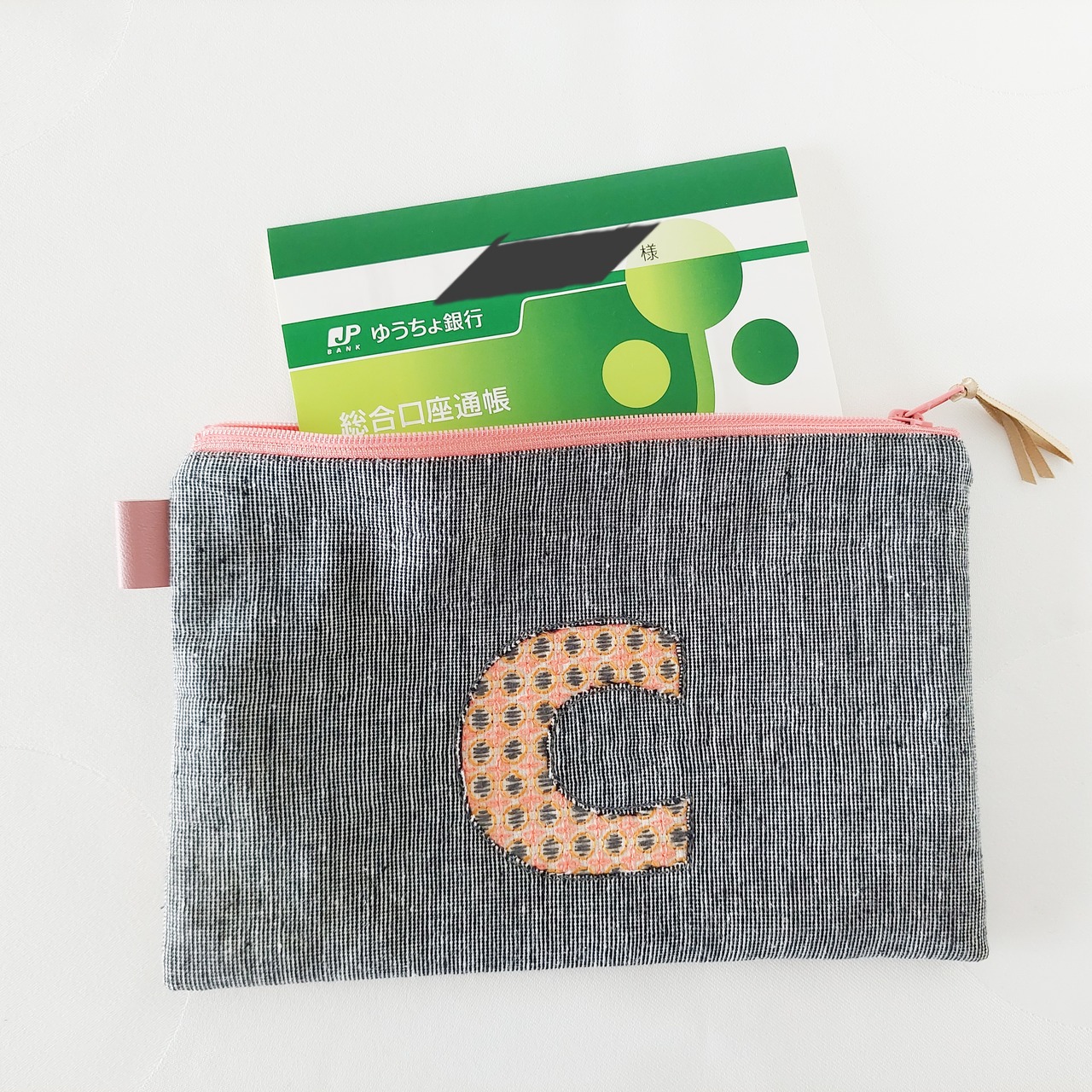 刺繍アルファベットポーチ C 通帳ケース コスメポーチに!