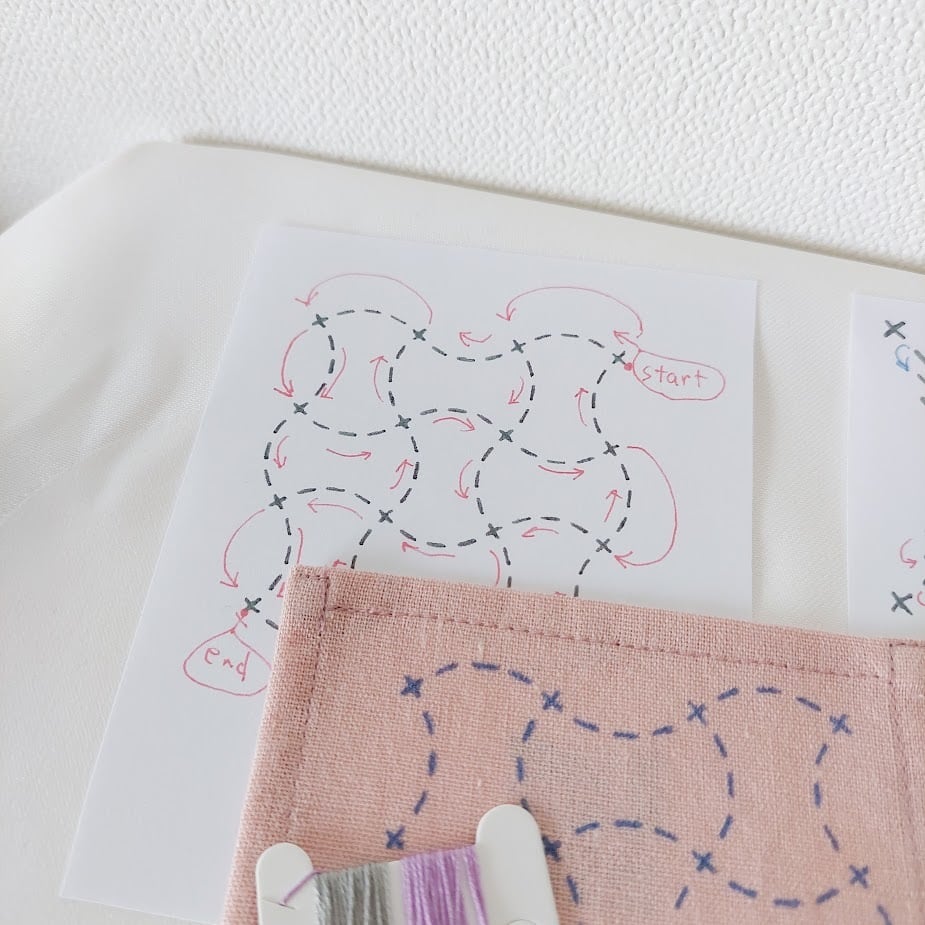 この刺し子刺繍キットは、初心者にも優しい図案が付いていますので、簡単に刺し子刺繍を楽しんでいただけます。