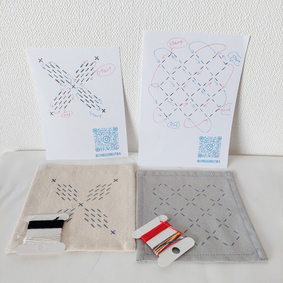 【刺し子刺繍キット コースター2枚】ちくちくフィーカ